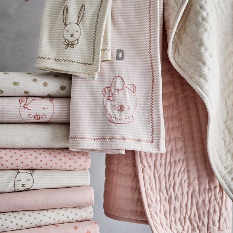 Aussi doux et confortable que votre t-shirt en coton préféré, notre jersey de coton chiné d'une douceur incomparable est idéal pour le linge de lit de bébé. Sa teinte rose pâle, fraîche et moderne, habille notre couette pour berceau en coton biologique ultra-doux, respectueux des peaux sensibles. Les broderies Kantha et le matelassage réalisés à la main lui confèrent une texture riche sans en alourdir le design. Associez cette couette aux autres couleurs et motifs de notre collection de linge de lit bébé en jersey chiné biologique, conçue pour créer des ensembles infinis.