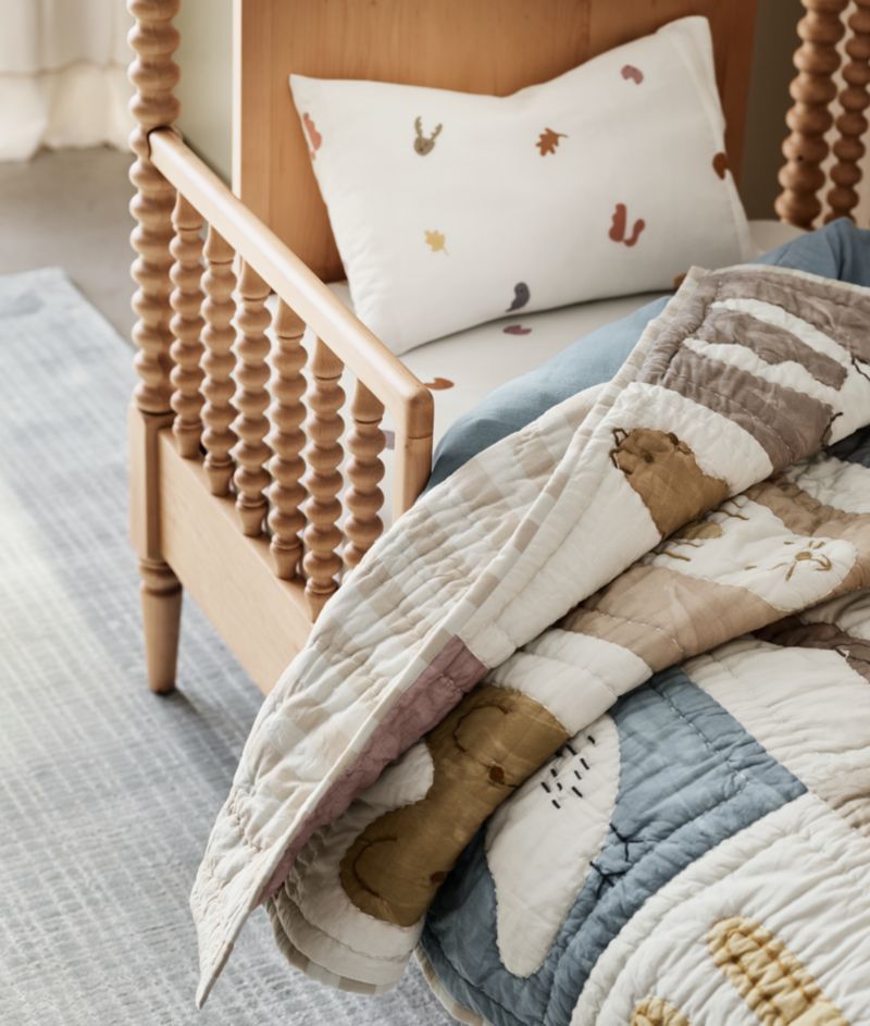 Le motif moderne et pictural de notre courtepointe pour berceau « Animaux de la forêt » transforme des formes abstraites en une adorable ménagerie d'animaux. Les détails brodés à la main donnent à chaque petite bête une expression douce que les tout-petits adoreront. Avec une palette de couleurs dynamique et mixte, elle est fabriquée en coton 100 % biologique et présente un motif à carreaux neutre au verso et sur les bordures. Ajoutez le drap-housse et la housse de matelas à langer assortis pour un ensemble irrésistiblement ludique.