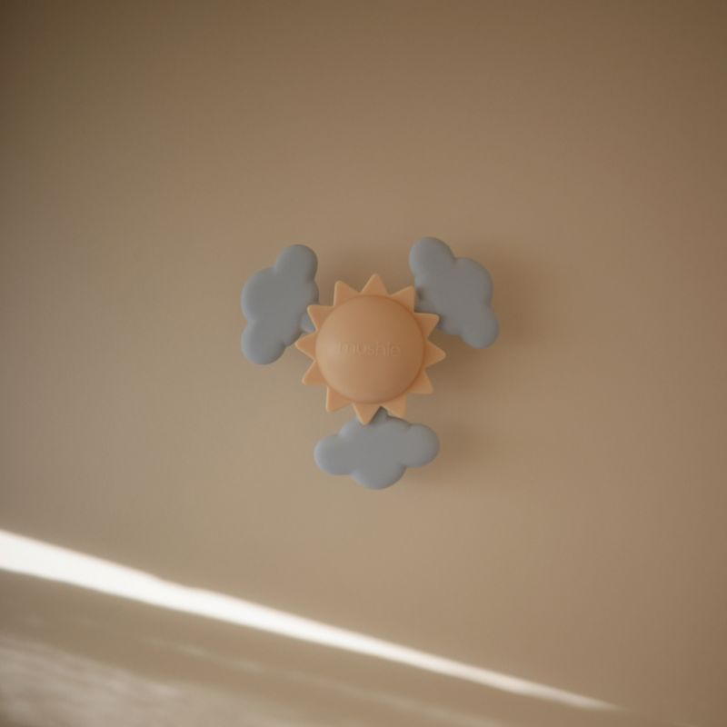 Stimulez l'imagination de votre tout-petit avec notre toupie à ventouse Mushie Sunshine, fabriquée en silicone 100 % alimentaire. Les petits rêveurs pourront faire tourner les nuages autour du soleil, créant ainsi une expérience visuelle et sensorielle apaisante et enchanteresse. Grâce à sa ventouse robuste, la toupie reste bien en place, évitant les chutes accidentelles et encourageant le jeu en toute autonomie. Occupez bébé à la maison ou en voyage en fixant la toupie à sa chaise haute, sa tablette d'avion et bien plus encore.