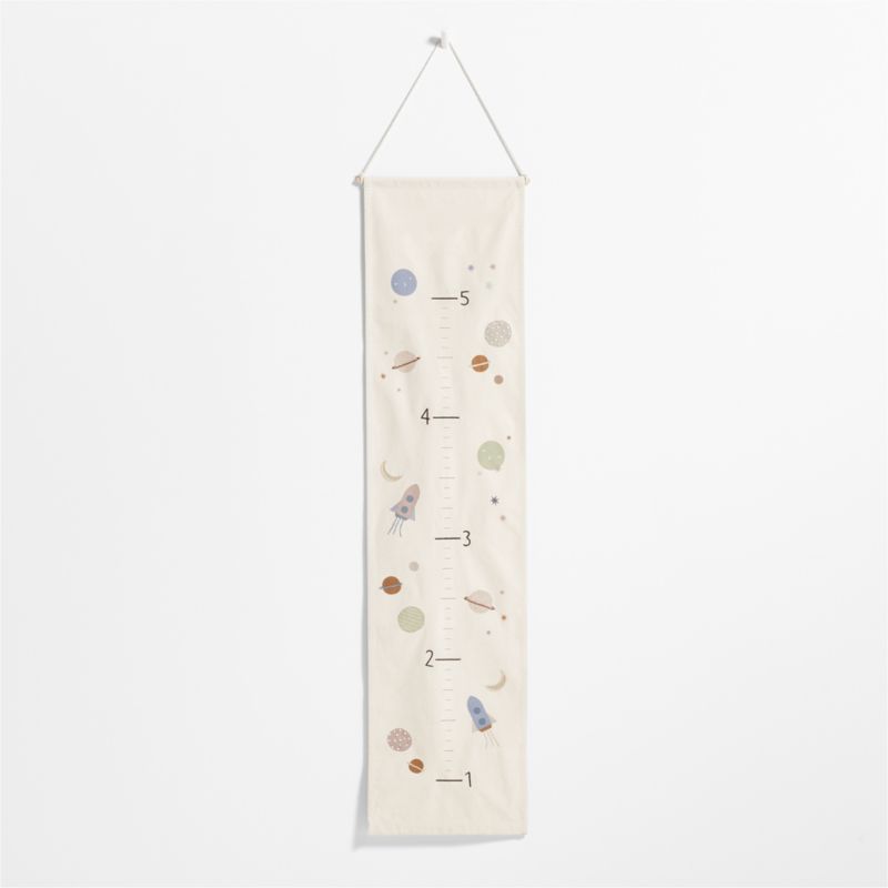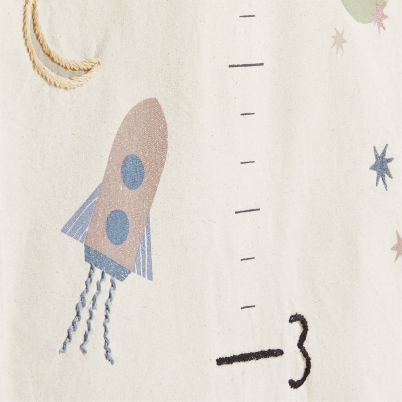 Regardez-les grandir à vue d'œil ! Notre toise murale « Space Canvas » suit les étapes importantes de la croissance de vos enfants avec style. Confectionnée en coton biologique moucheté, elle présente des images sérigraphiées du système solaire et des détails brodés, le tout dans des tons doux qui s'intègrent facilement à la décoration de toute chambre d'enfant.