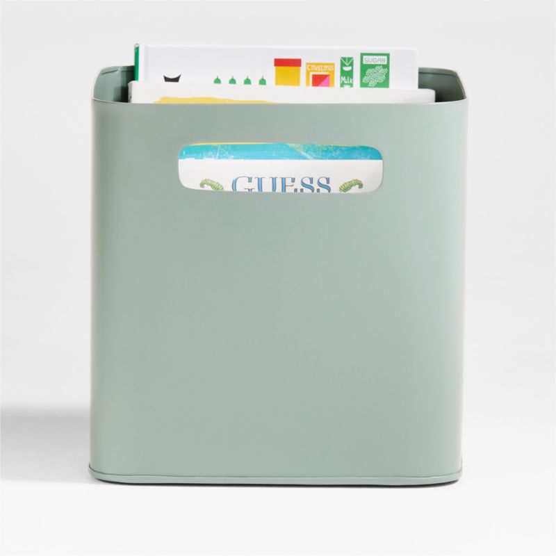 Rangez tout et n'importe quoi avec notre boîte de rangement métallique Outline, à la fois simple et élégante. Conçue pour une utilisation polyvalente et une grande durabilité, cette boîte en fer vert sauge est suffisamment profonde pour ranger vos livres, organiser votre matériel de loisirs créatifs ou avoir toujours vos fournitures scolaires à portée de main. Sa couleur vive et ses bords arrondis s'intègrent parfaitement dans une niche d'étagère ou sur un bureau d'enfant. Les poignées découpées à chaque extrémité sont faciles à prendre en main pour les plus petits. Cette boîte exclusive peut également servir de rangement pour les jeux vidéo des plus grands.
