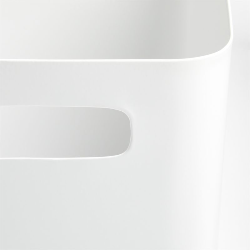 Rangez tout et n'importe quoi avec notre boîte de rangement métallique Outline, à la fois simple et élégante. Conçue pour une utilisation polyvalente et une grande durabilité, cette boîte en fer blanc est suffisamment profonde pour ranger vos livres, organiser votre matériel de loisirs créatifs ou avoir vos fournitures scolaires à portée de main. Ses bords arrondis lui confèrent une allure élégante et elle se glisse facilement dans une niche d'étagère ou sur le bureau d'un enfant. Les poignées découpées à chaque extrémité sont faciles à prendre en main pour les plus petits. Associez cette boîte à l'organiseur de bureau et à l'étagère métalliques Outline assortis pour créer un espace de travail idéal.