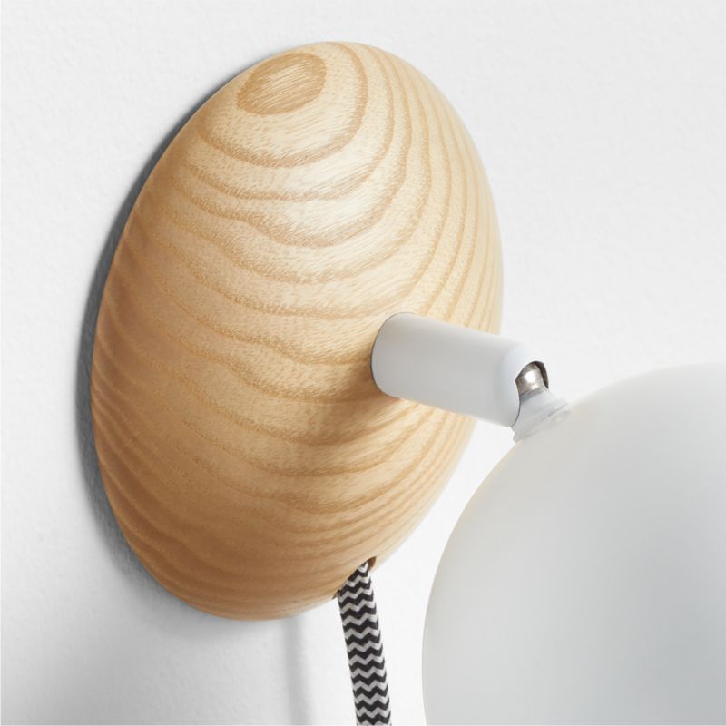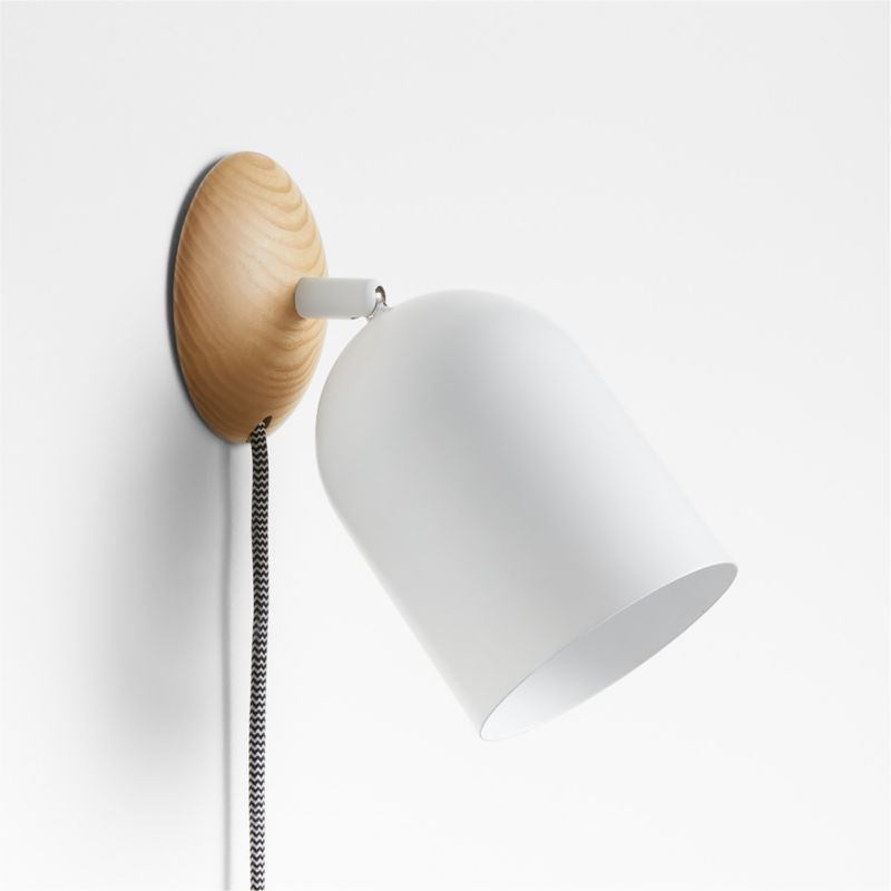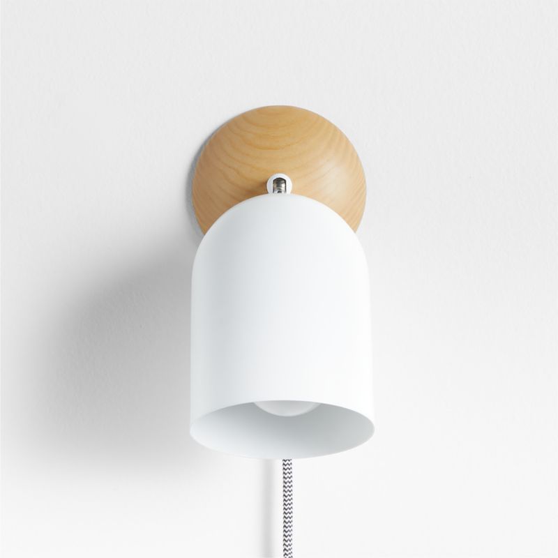 - Applique murale pivotante Pixi pour enfants, en métal blanc et bois, à brancher, hauteur 4,38 po , largeur 8,22 po, hauteur 4,38 po profondeur