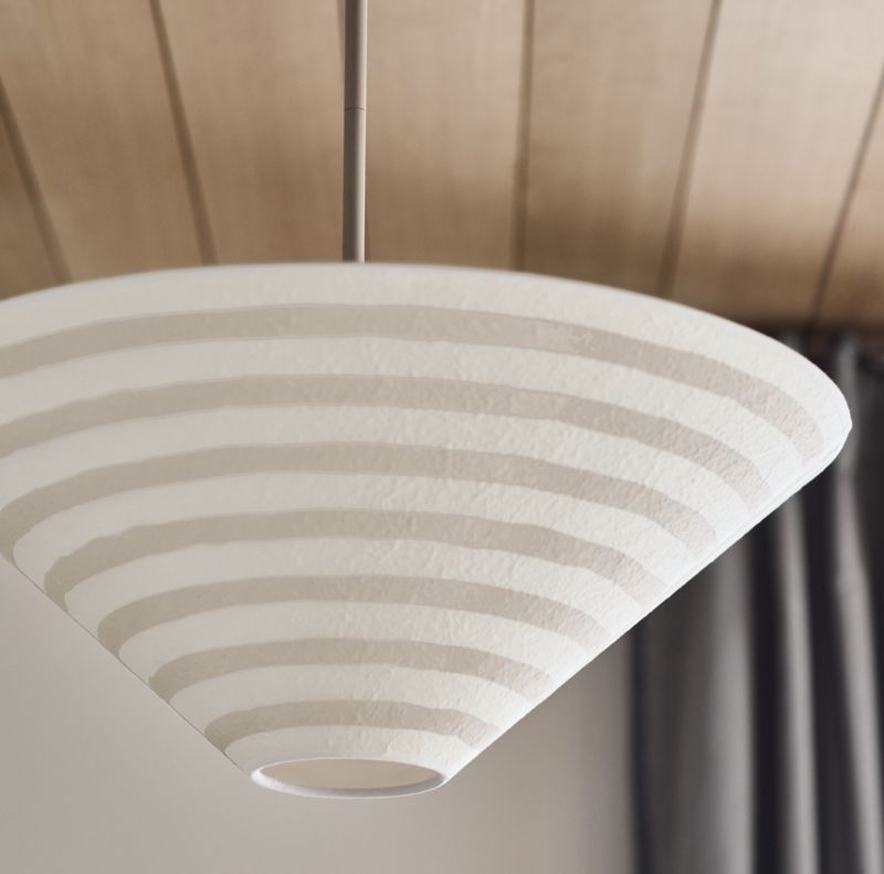 Les rayures classiques se transforment en une délicieuse surprise lorsqu'elles s'invitent au plafond. Notre plafonnier Zuri Stripe projette des rayures irrégulières et ton sur ton, créant une touche de motif à la fois ludique et polyvalente. Ce luminaire conique est fabriqué en papier mâché pour diffuser une lumière douce et agréable.