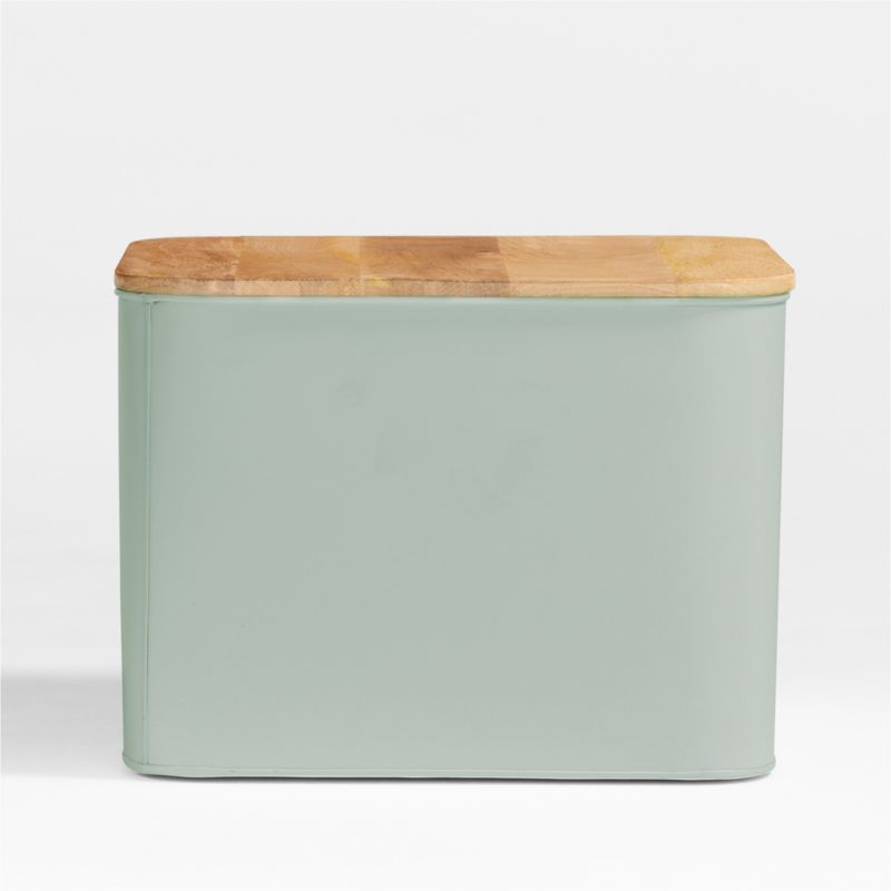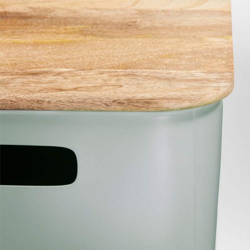 - Bac de rangement de sol en métal Outline Sage, format moyen, avec couvercle en bois