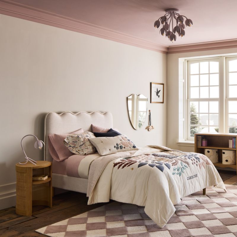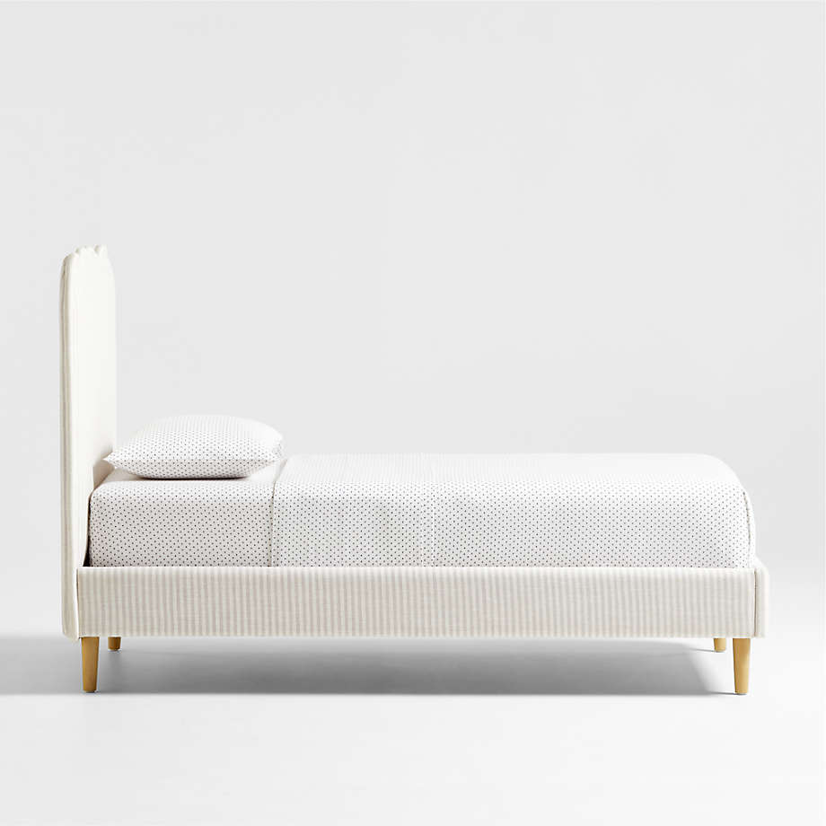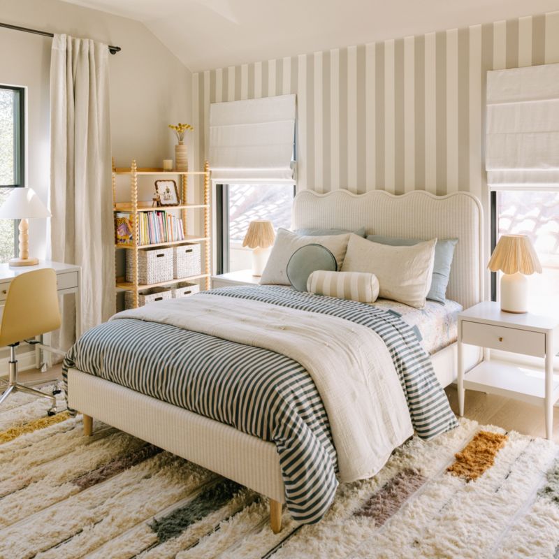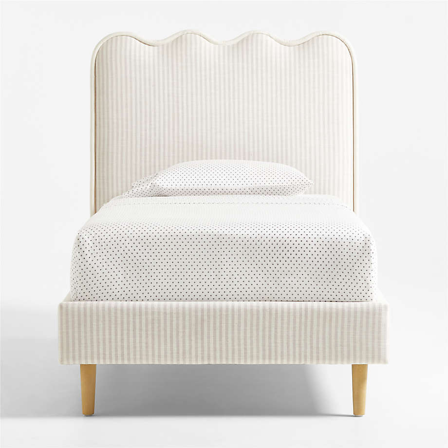 Avec son design ondulé très tendance, ce lit est un incontournable pour les chambres d'enfants chics. La tête de lit capitonnée offre un coin douillet pour se détendre et lire, tandis que le tissu rayé ivoire et lin naturel habille l'ensemble du cadre pour une douceur incomparable. Un passepoil surdimensionné assorti apporte une touche ludique.